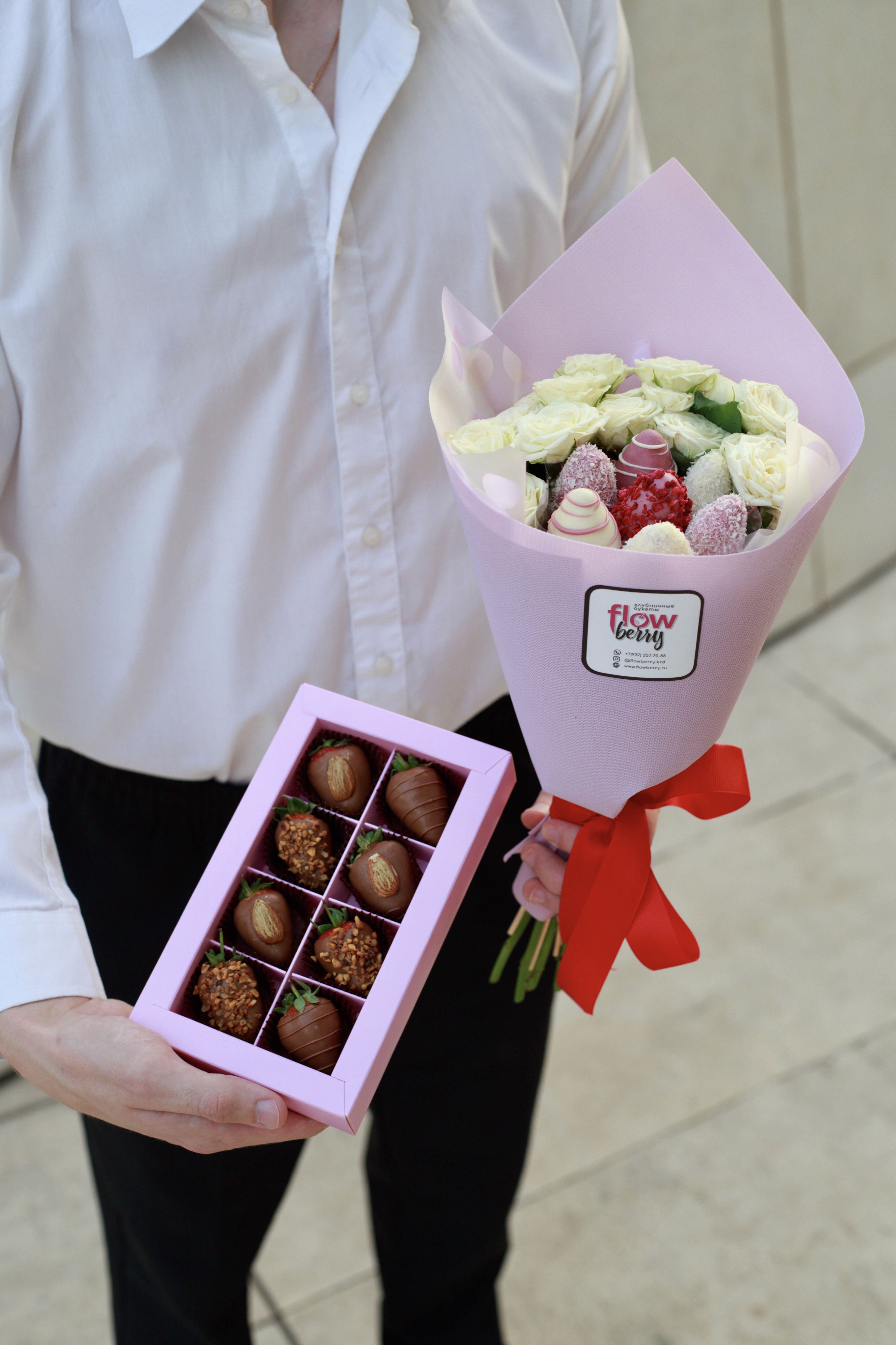Клубничный «Комбо набор №2» - букет, который сохраняет свою грацию благодаря элегантному стилю